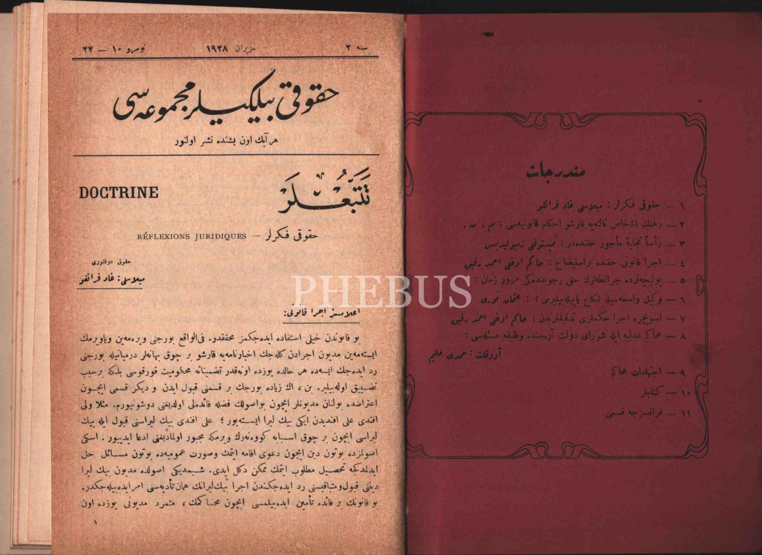 HUKUKİ BİLGİLER MECMUASI´nın Haziran 1928 tarihli 10-22. sayısı, 15x22 cm