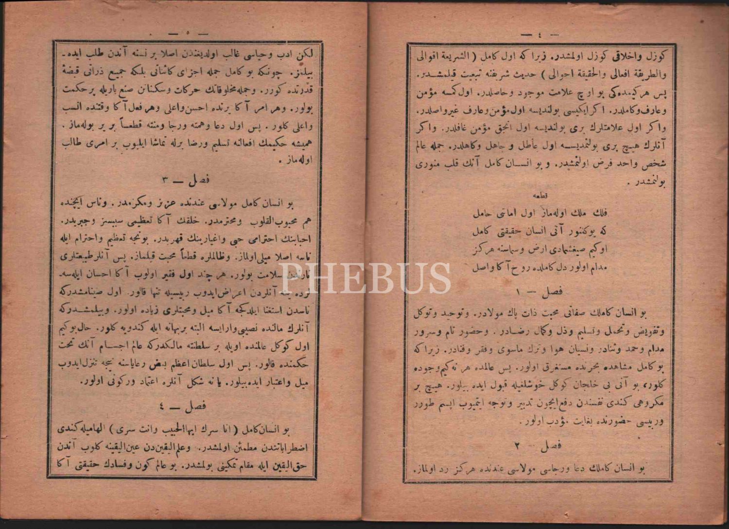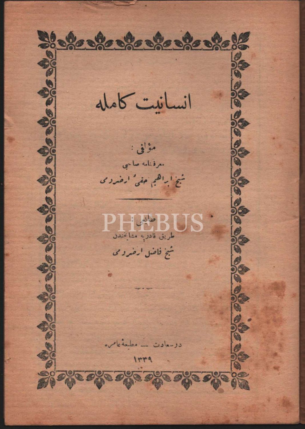 İNSANİYET-İ KÂMİLE, Erzurumlu İbrahim Hakkı, Amire Matbaası, İstanbul 1339, 16 s., 14x20 cm