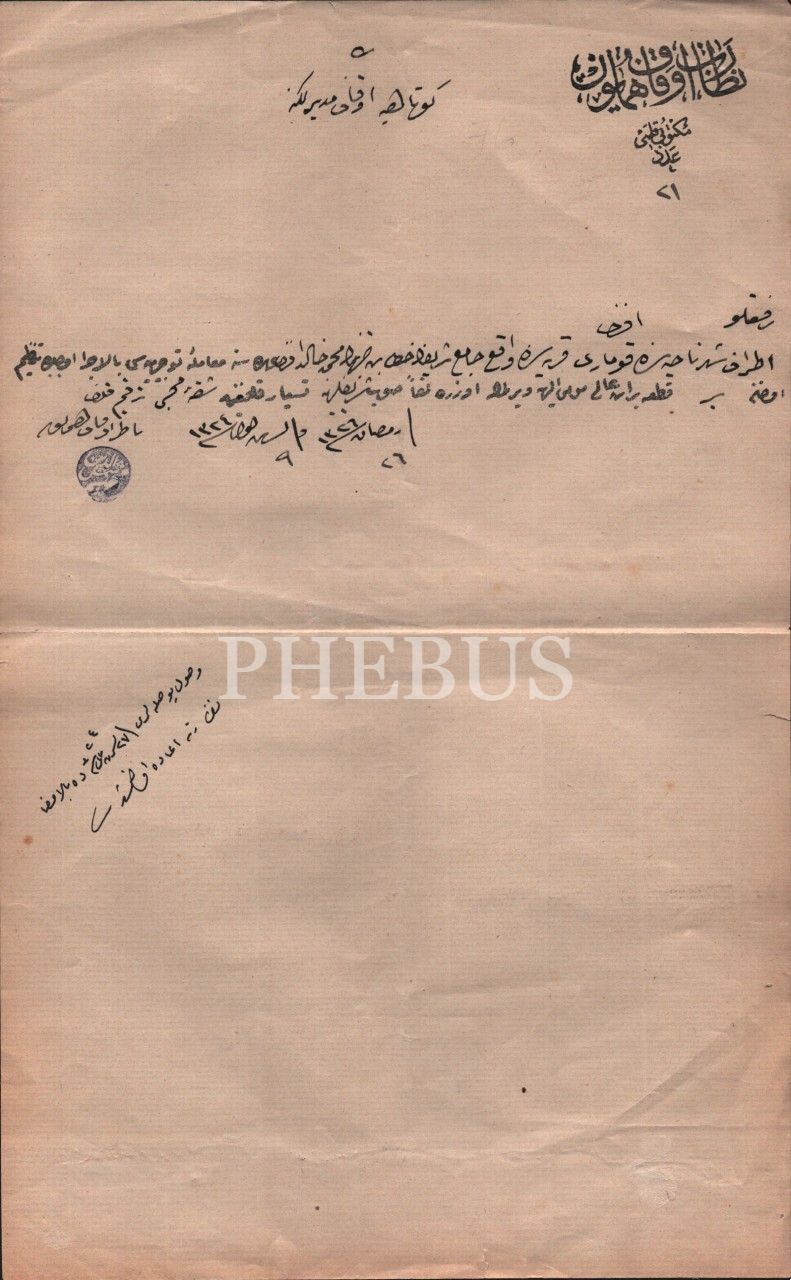 Bir caminin hatipliği için yapılan atama hakkında Kütahya Evkaf Müdürlüğüne gönderilen 1324 tarihli evrak, 20x33 cm