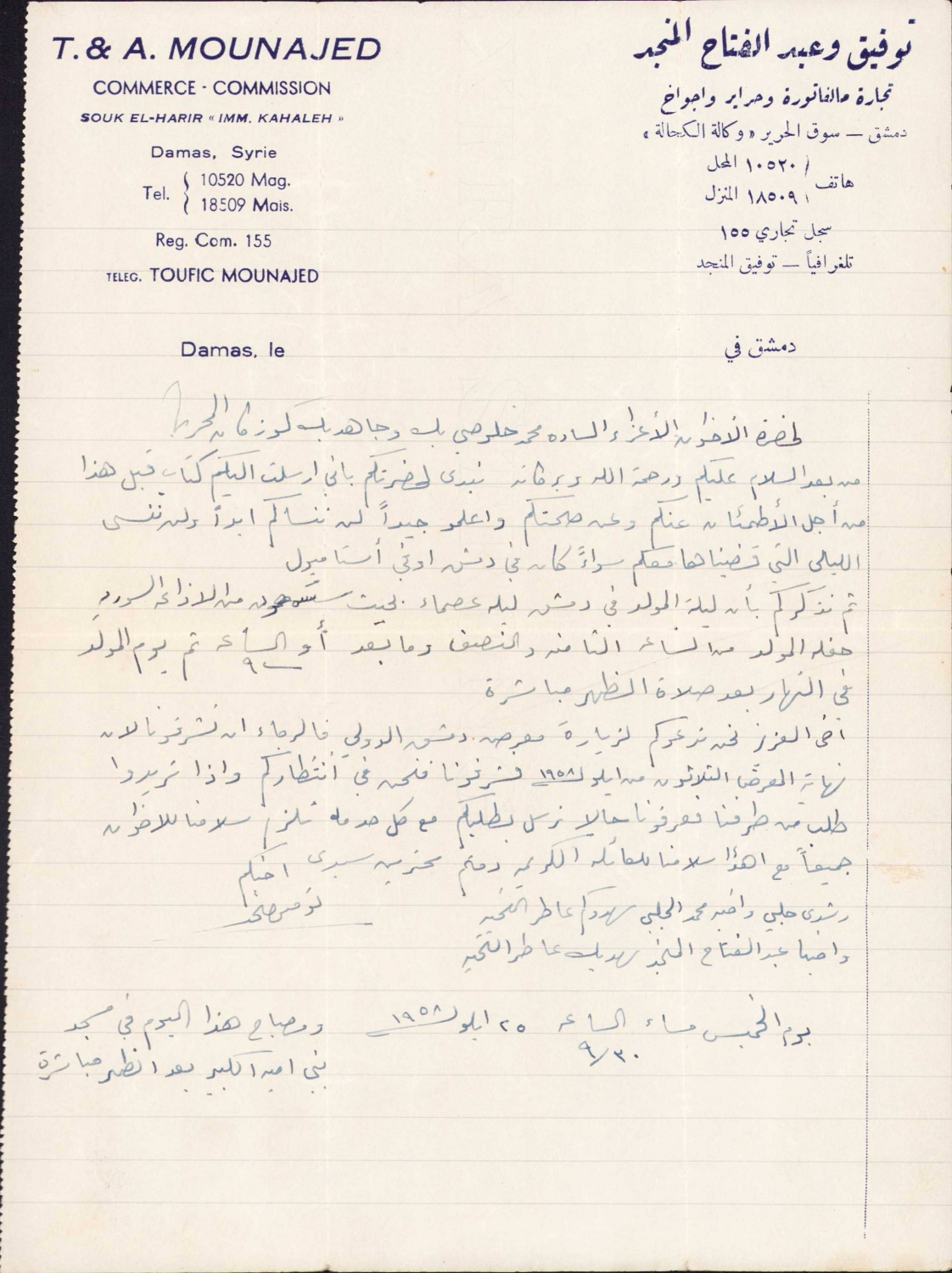 Tevfik & Abdullah Elfettah Elmünaced - Damask antetli iş yeri dokümanı, 26x19 cm