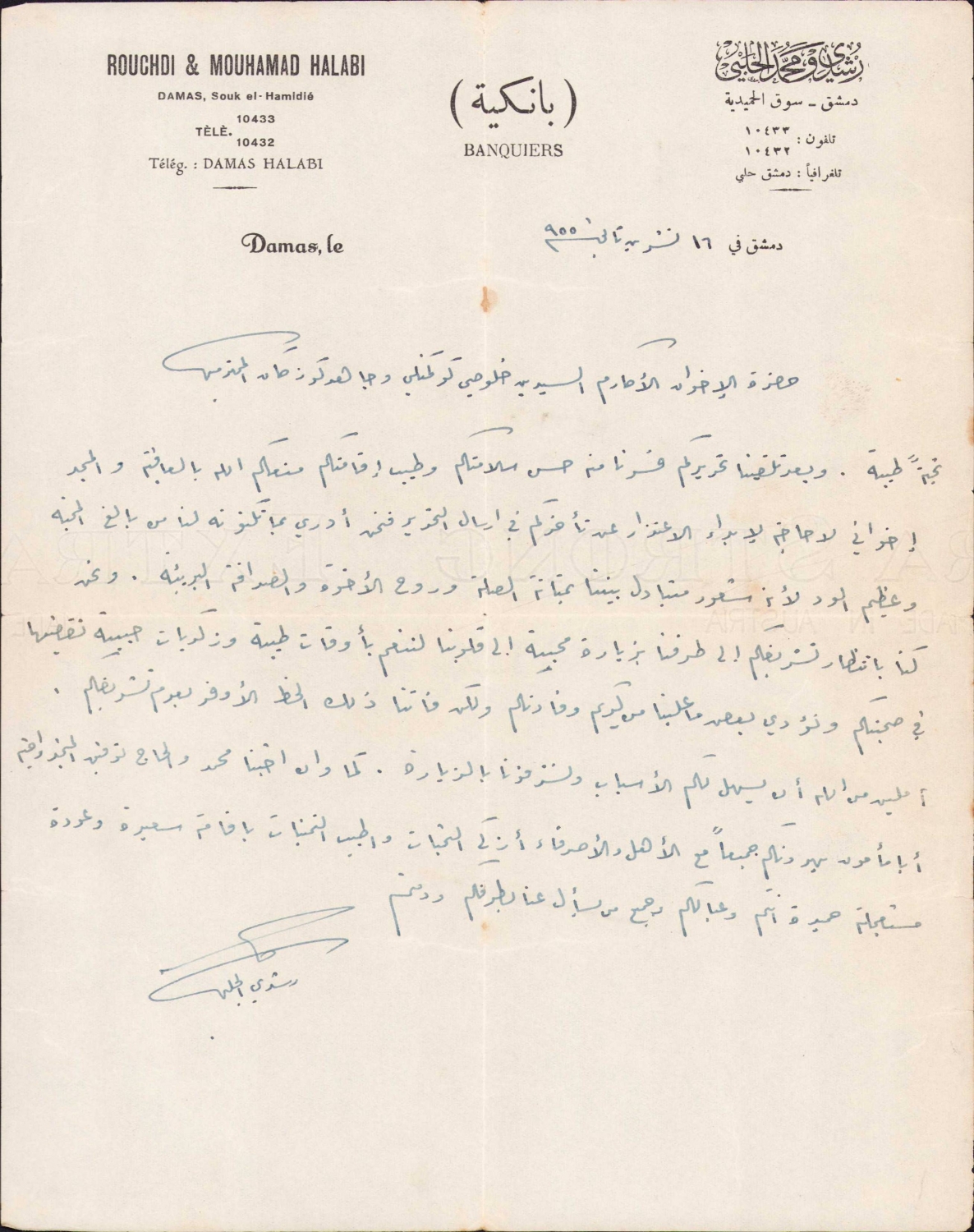 Osmanlıca - Fransızca Raşid & Muhammed Halebi - Damask antetli iş yeri dokümanı 28x42 cm /