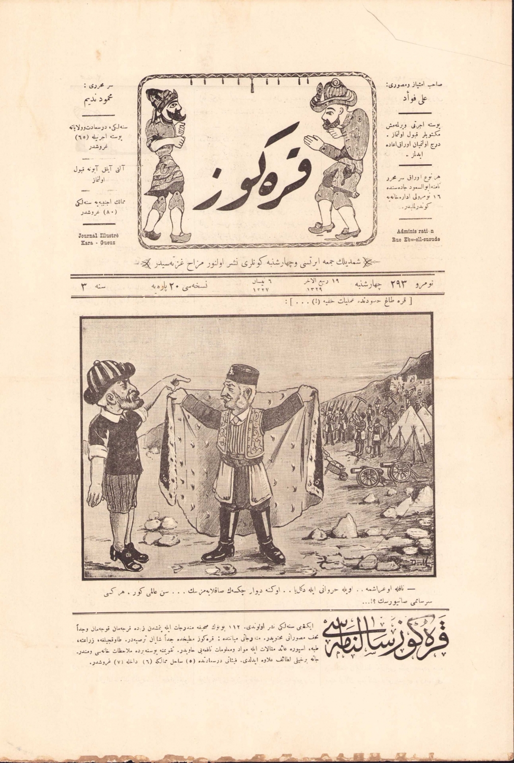Osmanlı Karagöz Mizah Gazetesi, resimli, 4 sayfa, 28x40 cm