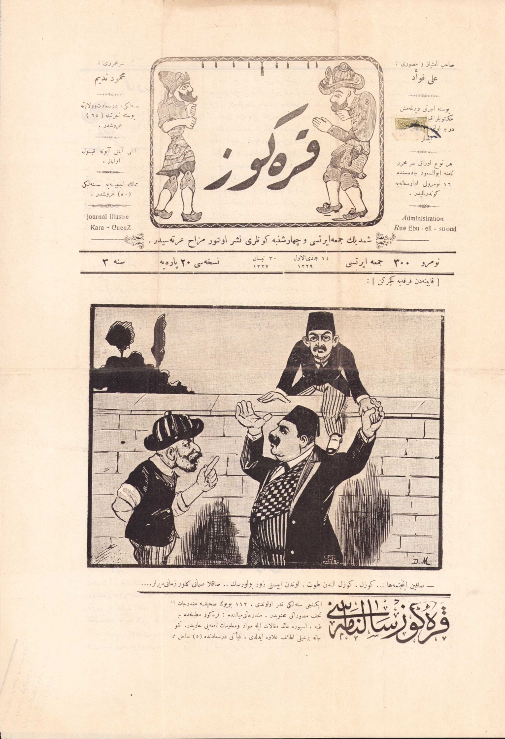 Osmanlı Karagöz Mizah Gazetesi, resimli, 4 sayfa, 28x40 cm