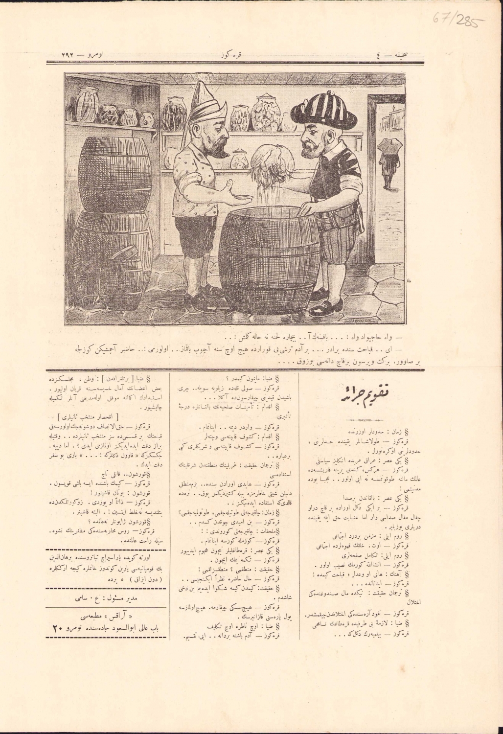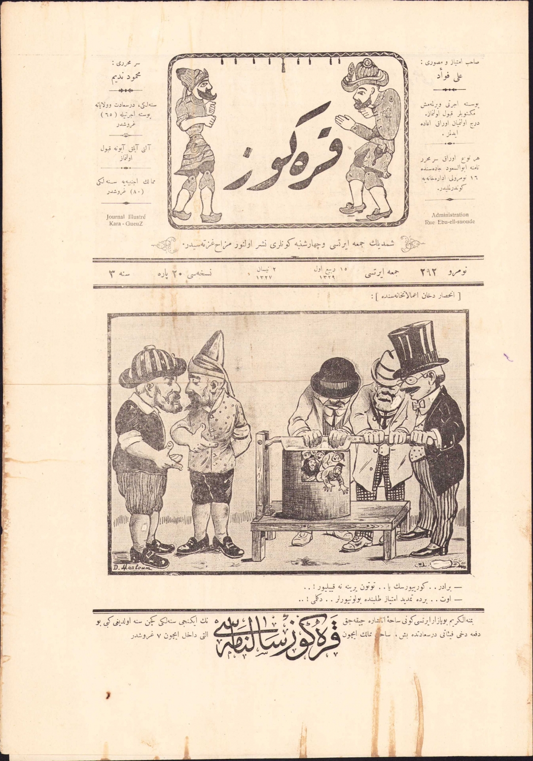 Osmanlı Karagöz Mizah Gazetesi, resimli, 4 sayfa, 28x40 cm