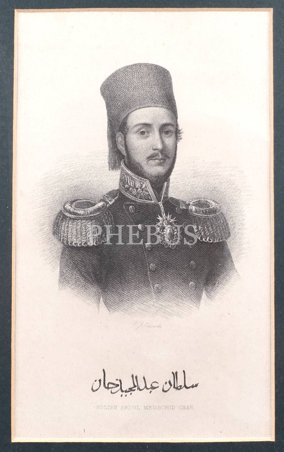Pardoe Julia´nın THE BEAUTIES OF THE BOSPHORUS adlı kitabından çelik baskı Sultan Abdülmecid Han gravürü, çerçevesiyle birlikte 31x40 cm