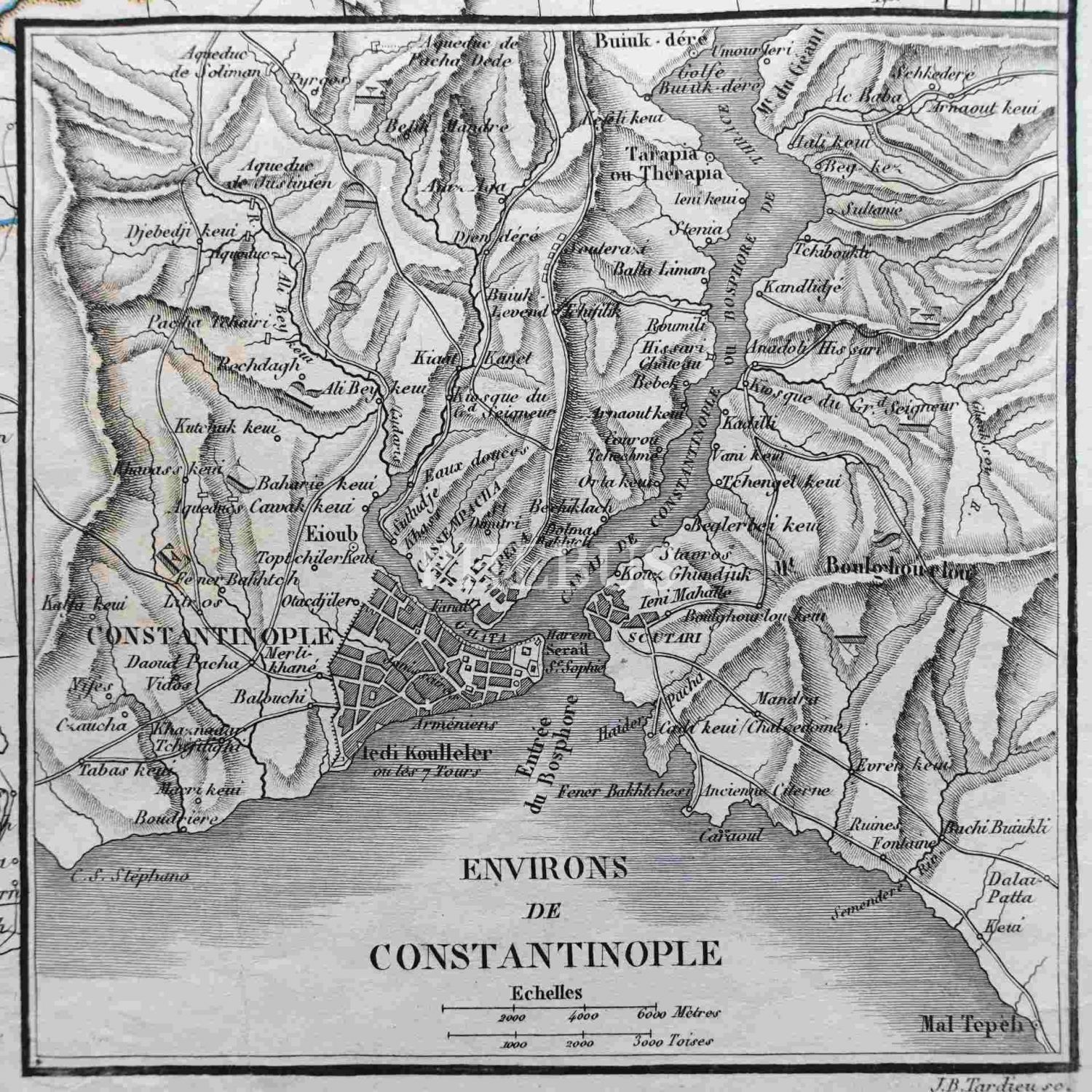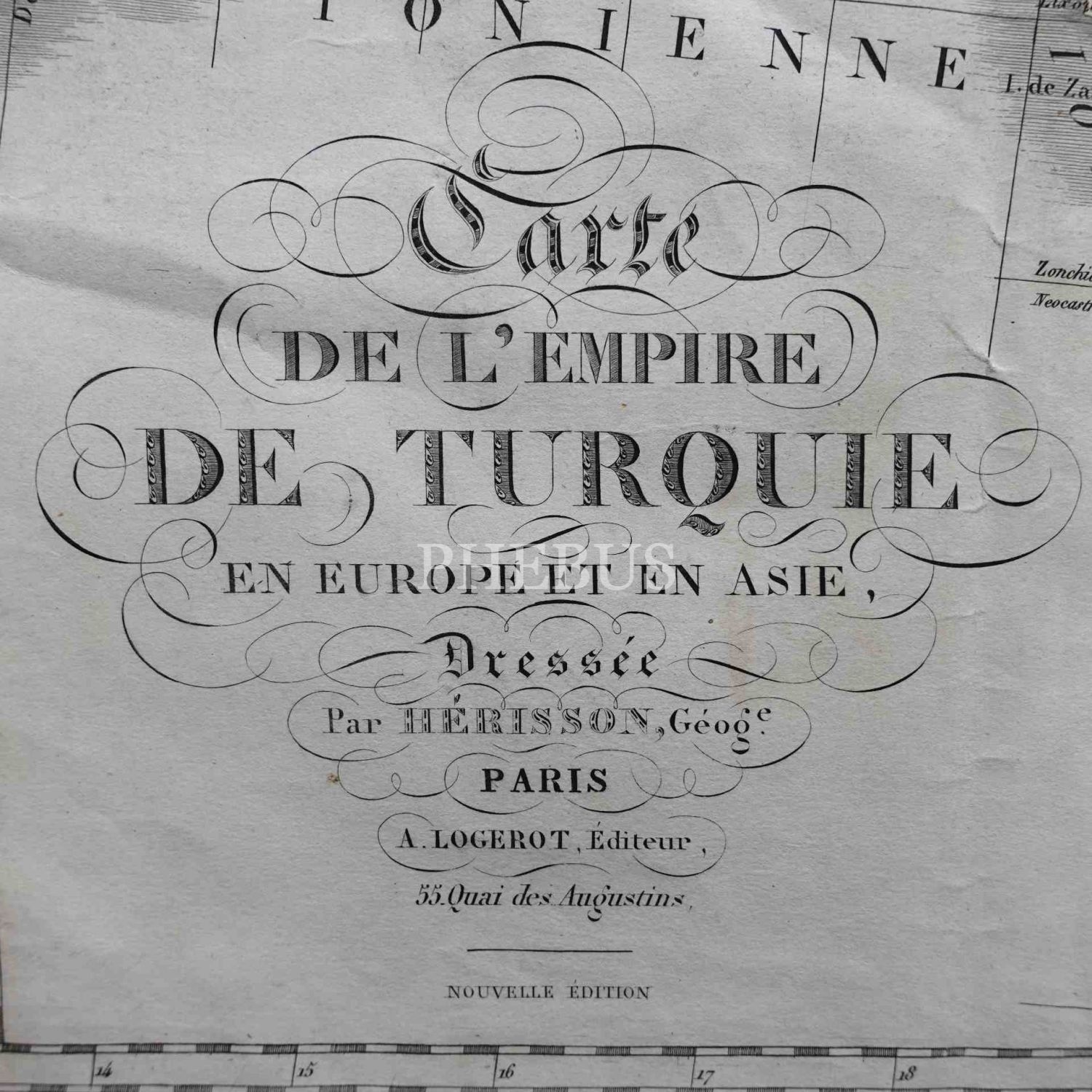 Constantinople [İstanbul] çevresi detayıyla TÜRK İMPARATORLUĞU -Avrupa ve Asya´da- haritası, Eustache Herrison, Paris, 90x62 cm, ortadan küçük bir kısmı ayrık haliyle