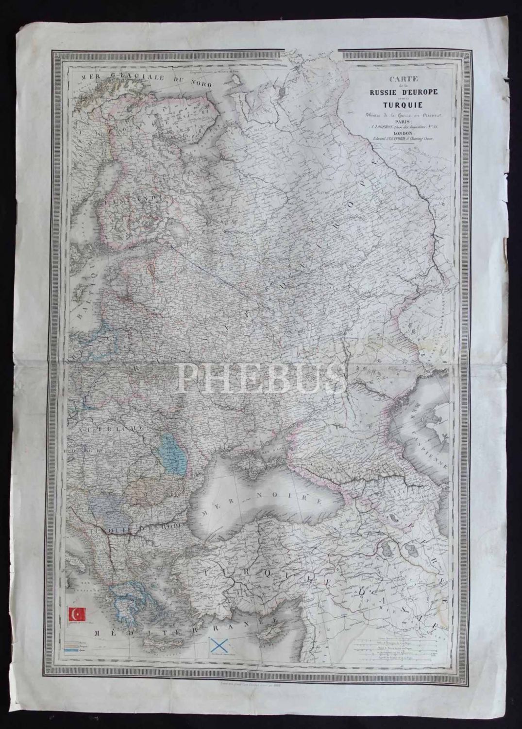 AVRUPA RUSYA'SI VE TÜRKİYE haritası, Theatre de la Guerre en Orient [Doğu´da Savaş Tiyatrosu], A. Logerot - Paris & Edward Standford - London, 72x101 cm