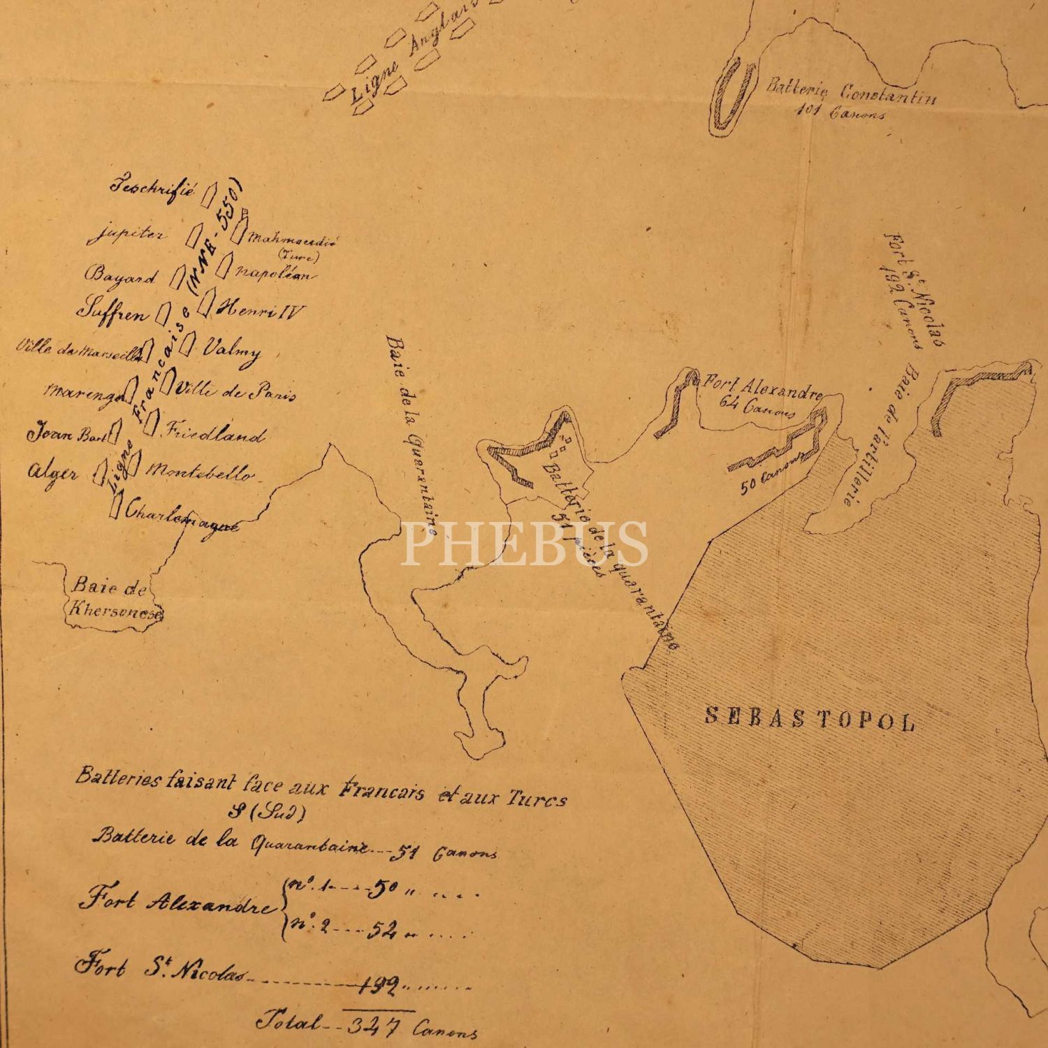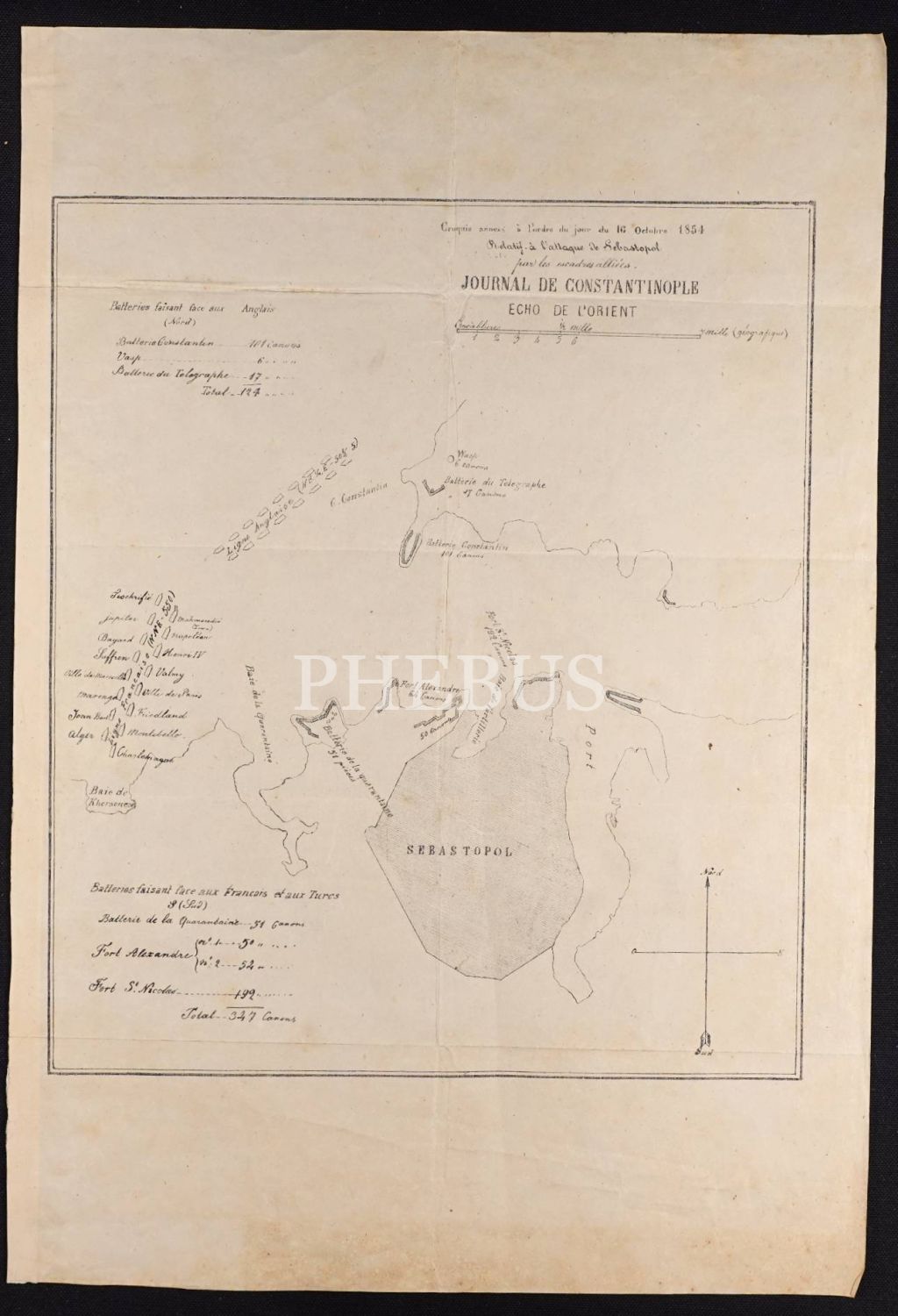 16 Ekim 1854 tarihinde Journal De Constantinople tarafından yayımlanan Sivastopol Kuşatması planı, 30x44 cm