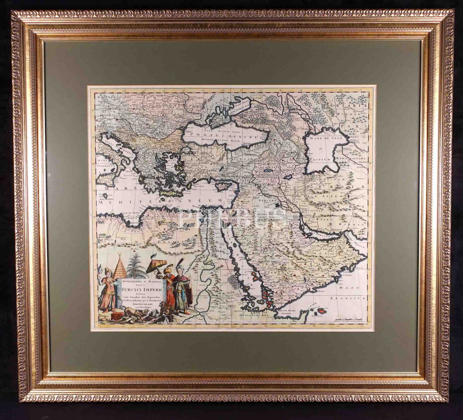 Justus Danckerts´in 1668 tarihli "Türk İmparatorluğunun en doğru ve en büyük haritası", çerçevesiyle birlikte 87x78 cm