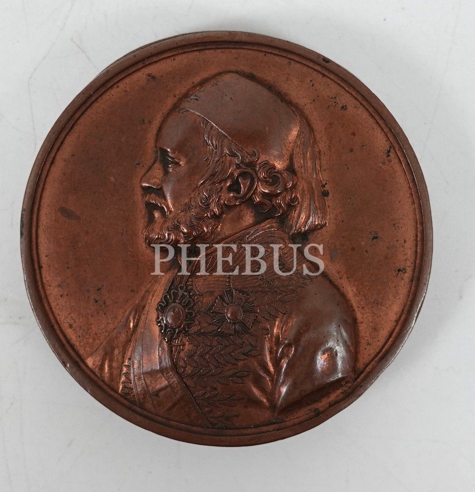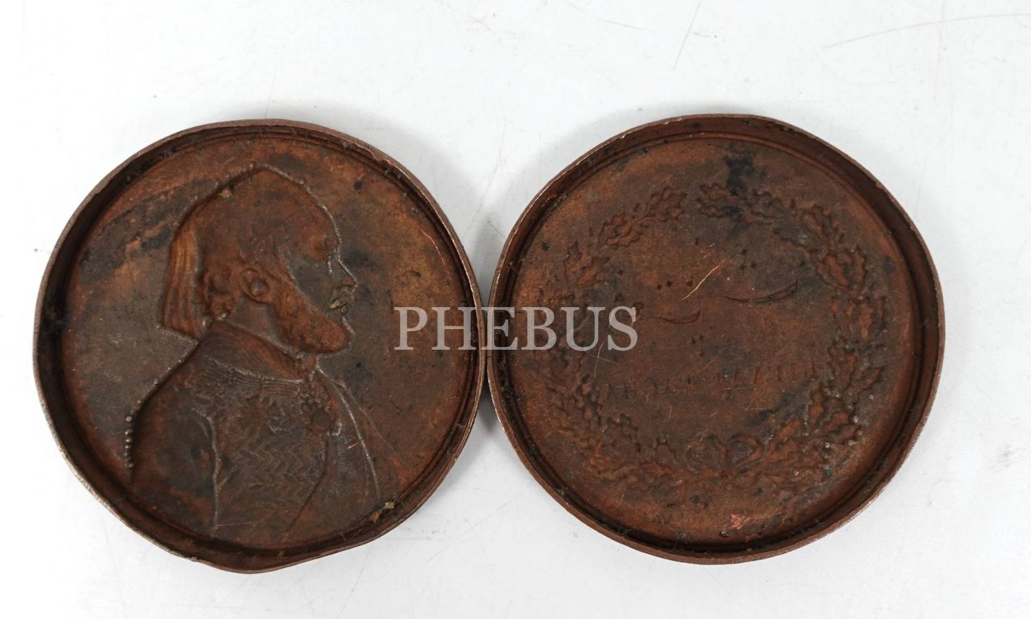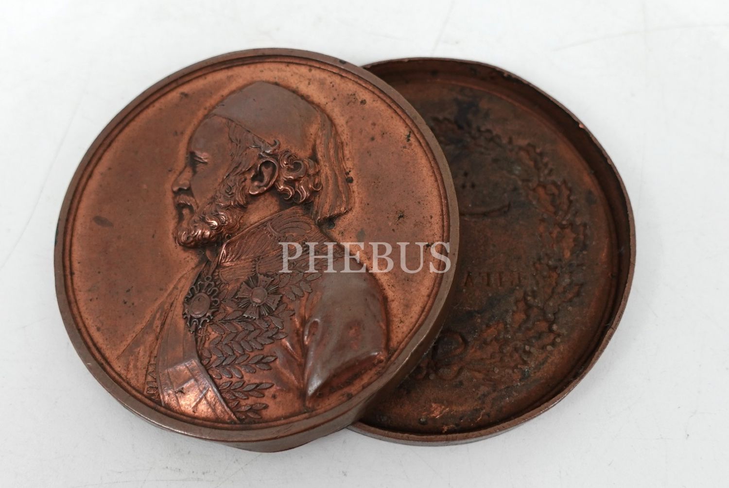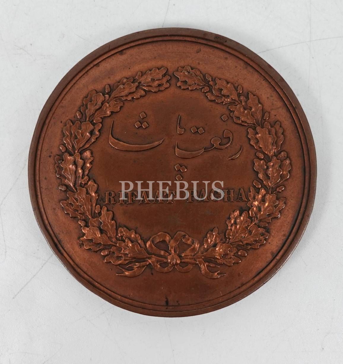 Ön yüzü Osmanlı Hariciye Nazırı Sadık Rıfat Paşa kabartma görselli, arka yüzü Osmanlı ve Latin harfleriyle "Rıfat Paşa" yazılı madalyanın ön ve arka denemesi, çap: 5 cm