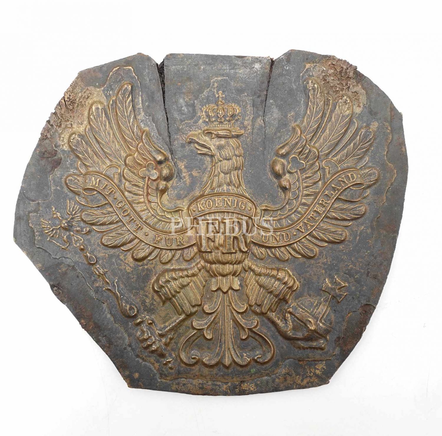 Üzerinde "Mit Gott Für Koenig Und Vaterland", yani "Kral ve Anavatan İçin Tanrı İle" yazısıyla, askerî başarıları ve ülkesini kalkındırma yolundaki çabalarından dolayı "Büyük Friedrich" olarak anılan Prusya Kralı II. Friedrich´i simgeleyen "FR" ibaresi yer alan kartallı arma, 19. yy ortaları ile 20. yy başlarında Prusya Ordusu tarafından kullanılan "Pickelhaube" isimli miğferlerde de yer almaktaydı.