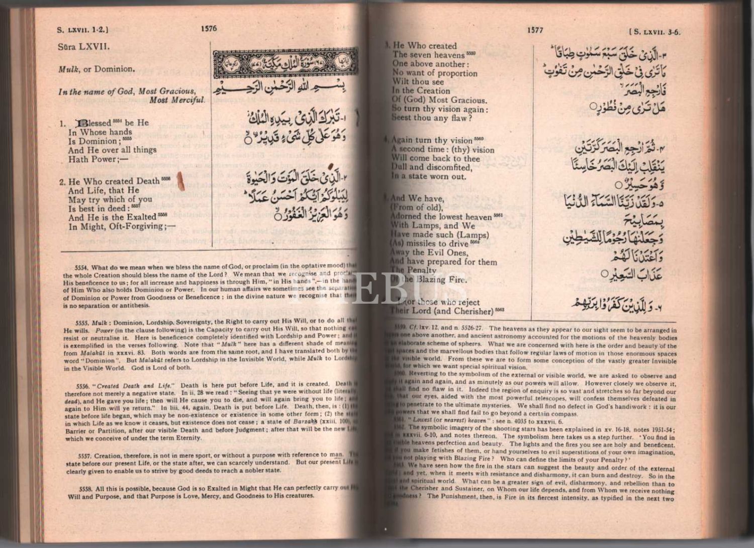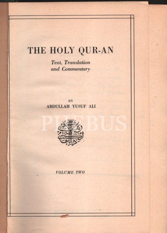 Abdullah Yusuf Ali´nin İngilizce Kur´ân çevirisi: THE HOLY QUR-AN- Text, Translation and Commentary [Metin, Tercüme ve Yorum], 2 Cilt, 1862 sayfa, 1946, New York, 18x26 cm