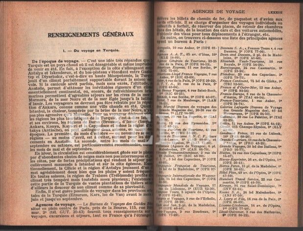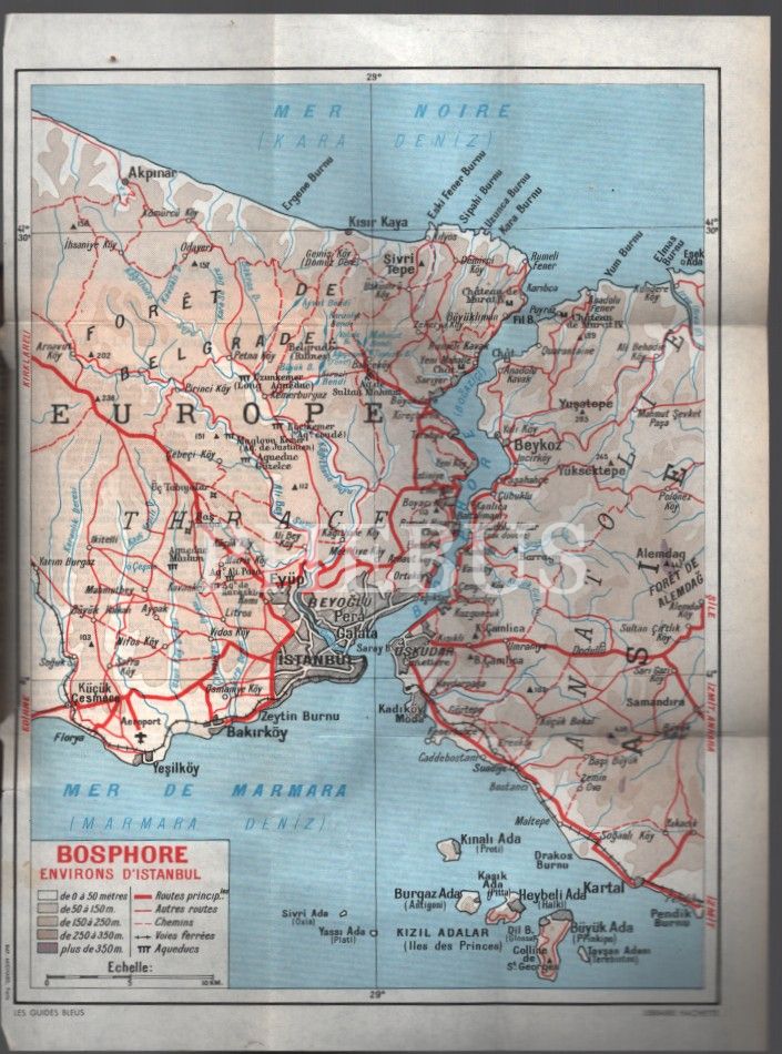 Katlanır İstanbul, Ankara ve Türkiye haritası ekleriyle karış karış Türkiye seyahat rehberi: LES GUIDES BLEUS TURQUIE, Librairie Hachette, 1958 - Paris, 550 sayfa, 11x16 cm