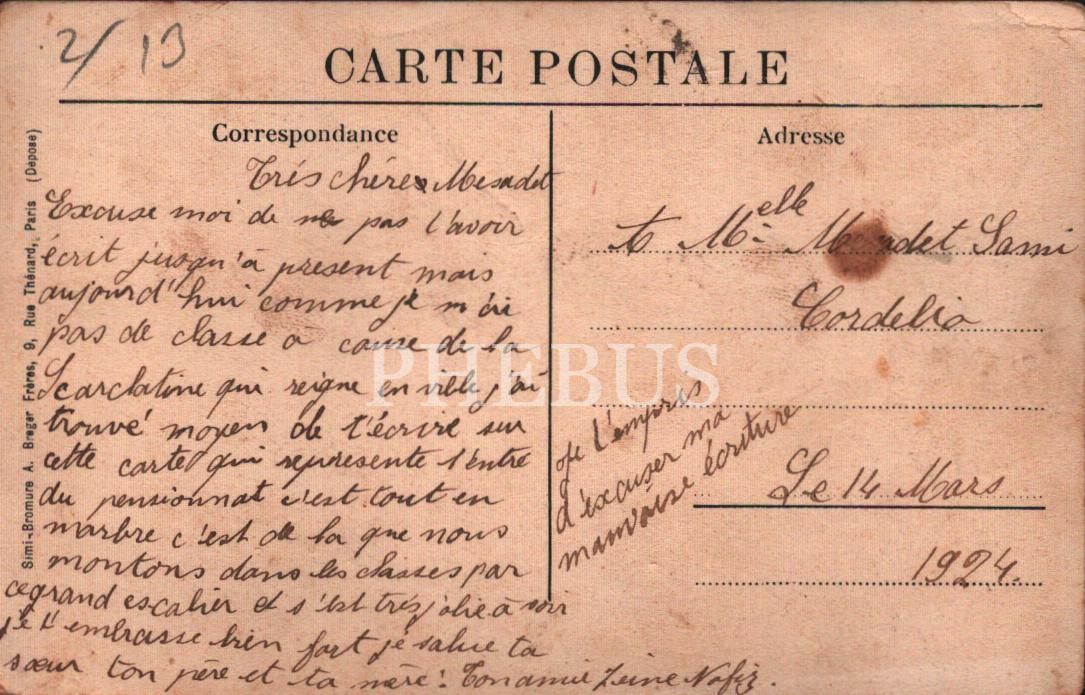 Notre-Dame de Sion Fransız Lisesi/Constantinople, arkası yazılı