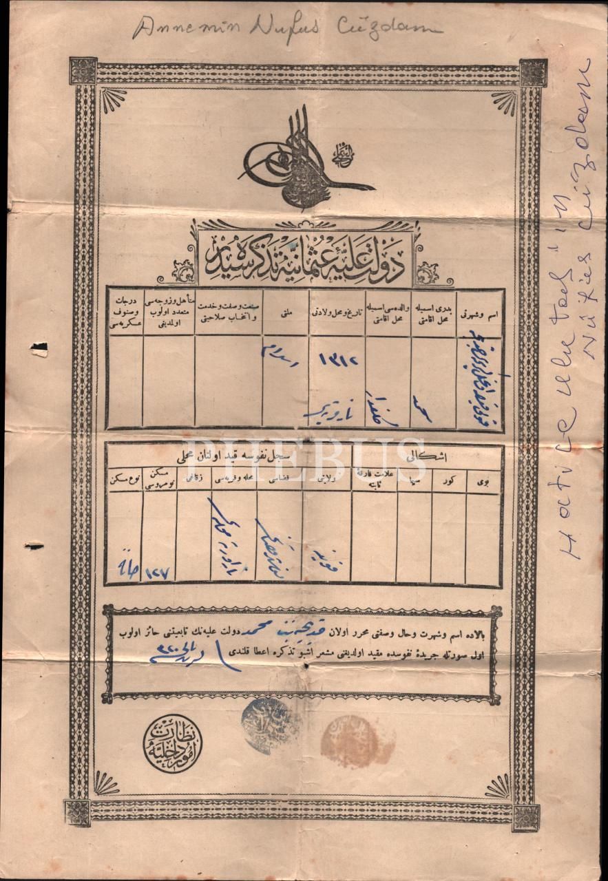 Nüfus tezkiresi, Konya 1320, 24x35 cm