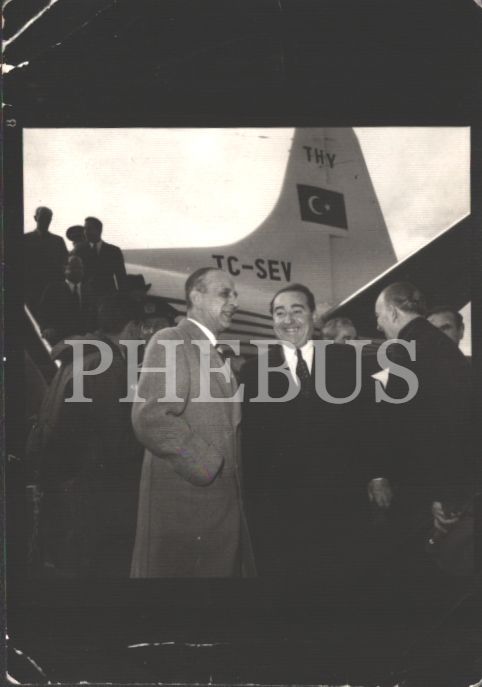 Siyaset tarihi: TC-SEV uçağından inen Adnan Menderes, Publifoto-Roma damgalı, 6x9 cm