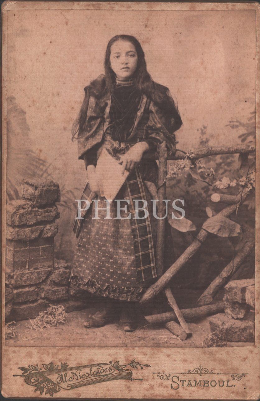 Mektepli kız çocuğu, Al.Nicolaides Fotoğrafhanesi- Stamboul, 11x16 cm