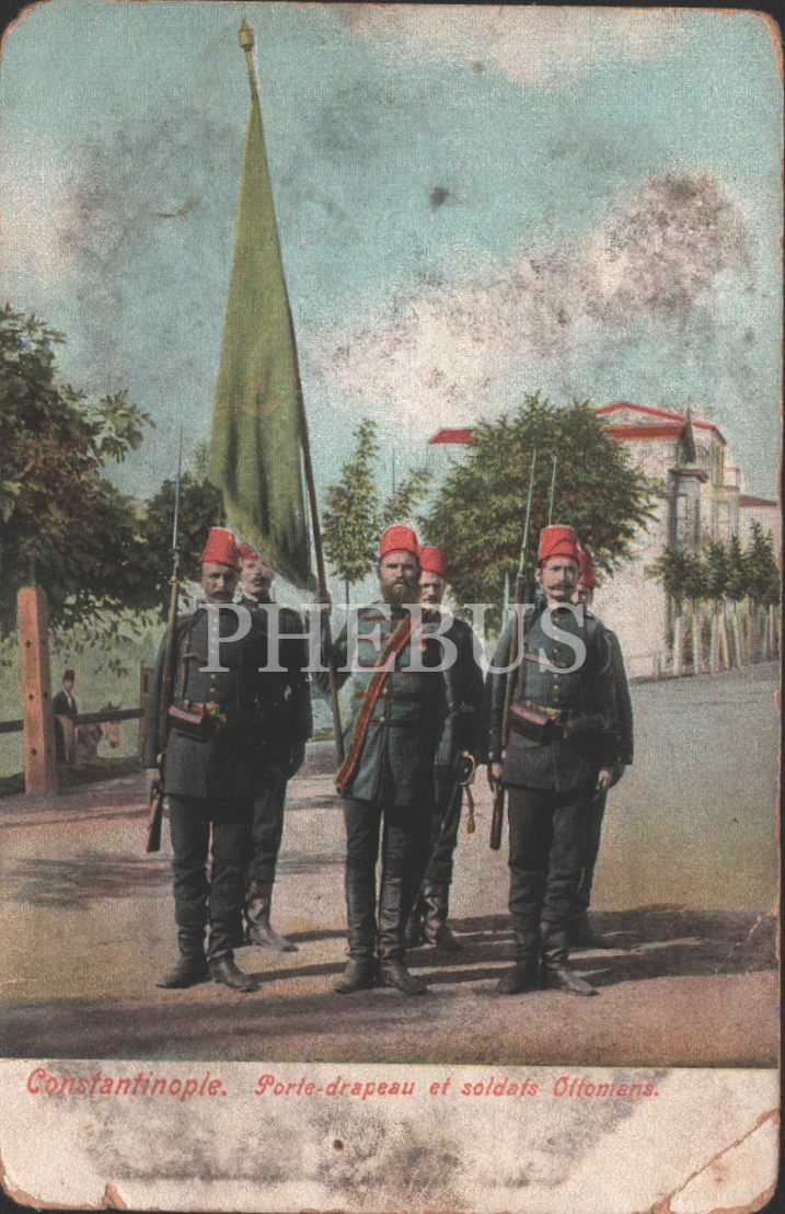 Osmanlı sancağı ve askerleri, Constantinople, alt köşesi kırık haliyle