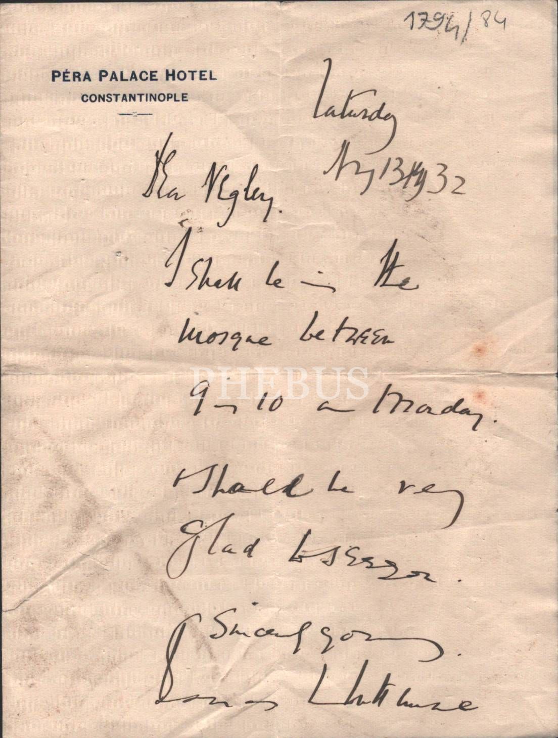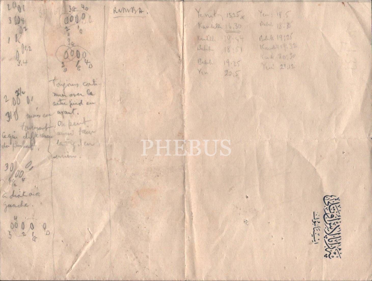 Osmanlıca-Fransızca Pera Palas Oteli- Constantinople [İstanbul] yazılı kâğıt üzerinde yazı, 14x18 cm