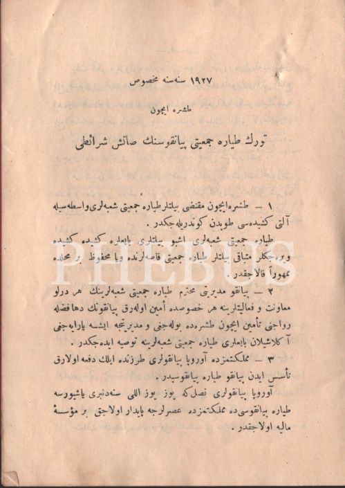 1927 Senesine Mahsus Taşra İçin TÜRK TAYYARE CEMİYETİ PİYANKOSUNUN SATIŞ ŞERAİTİ, Cumhuriyet Matbaası, İstanbul 1926, 7 s., 14x20 cm