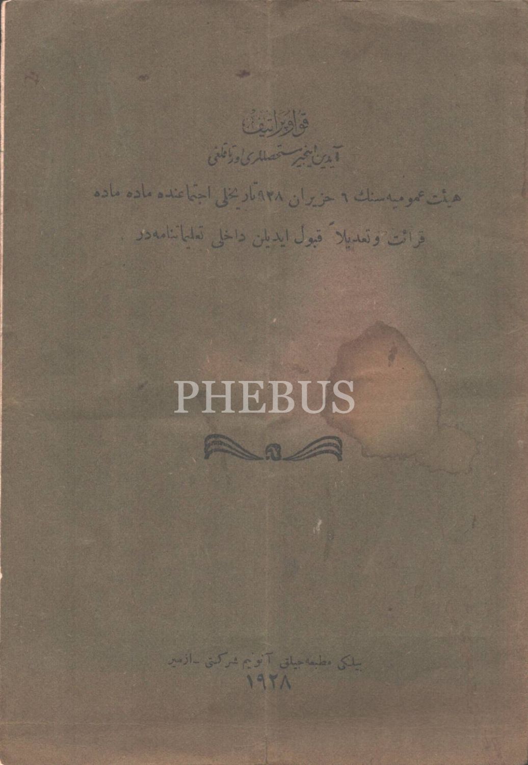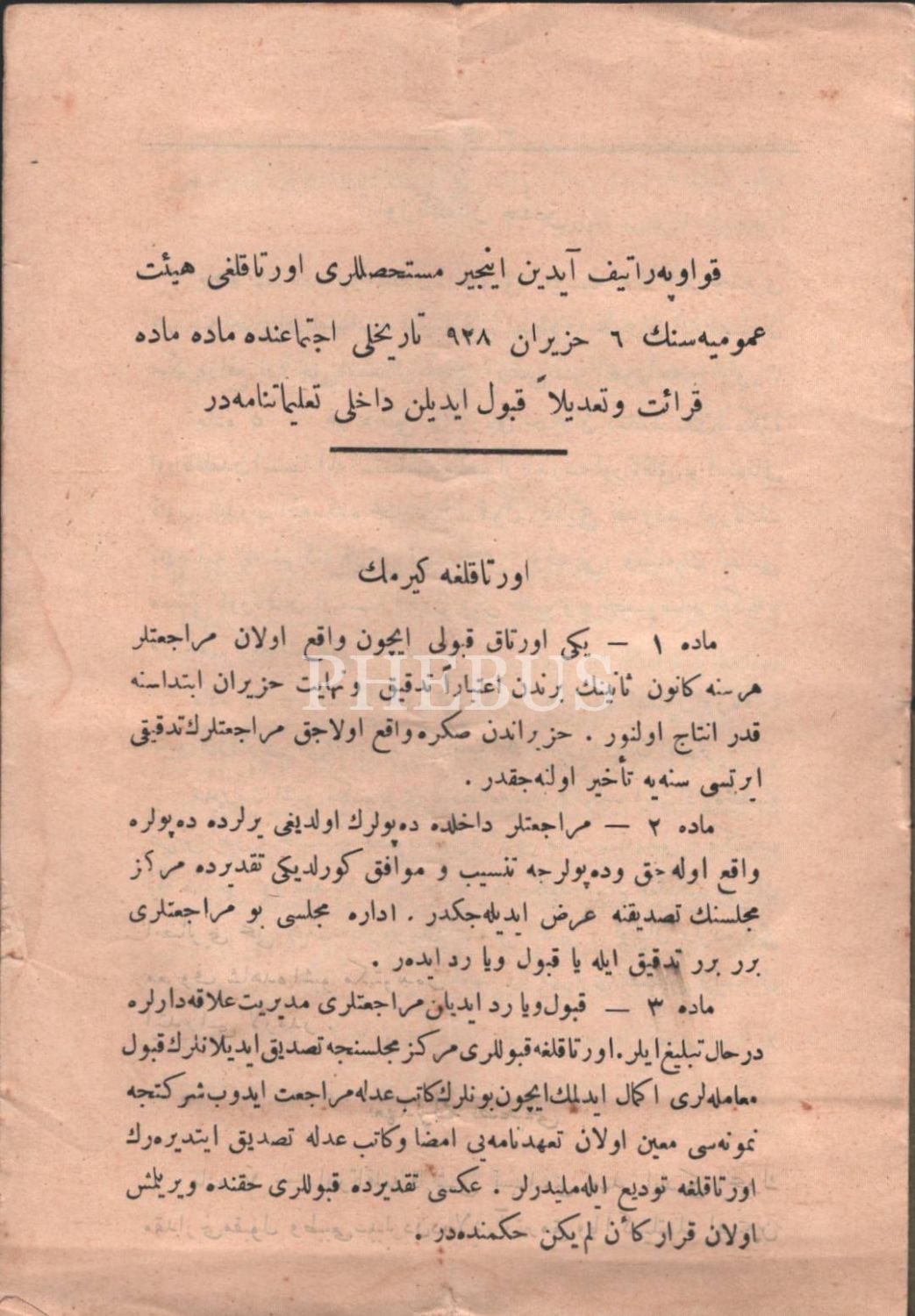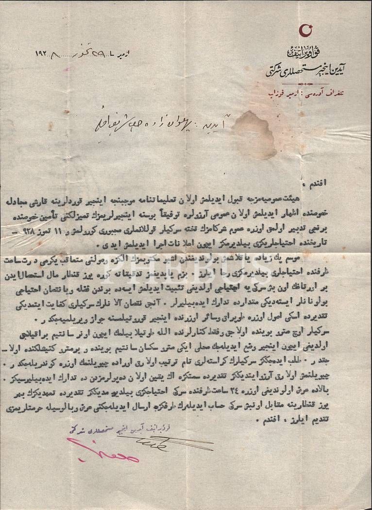 Kooperatif Aydın İncir Müstahsılları Ortaklığı Dahilî Talimatnamesi, Yeni Matbaacılık Anonim Şirketi, İzmir 1928, 8 s., 14x20 cm