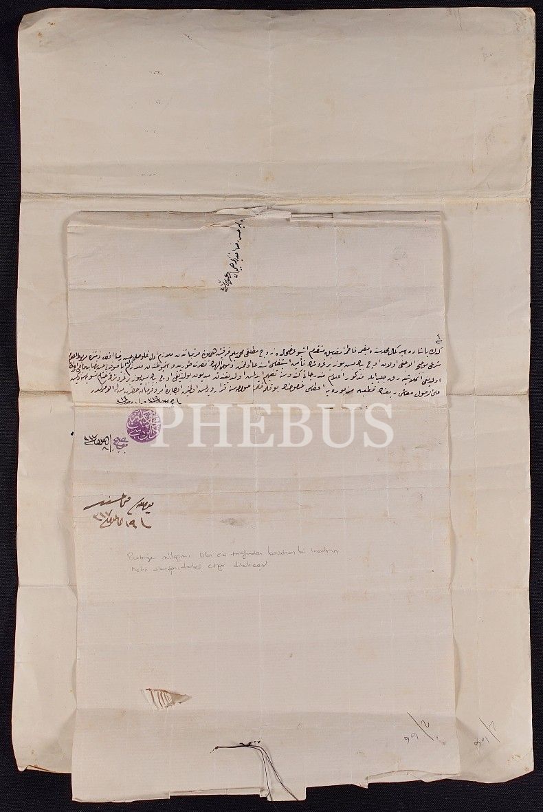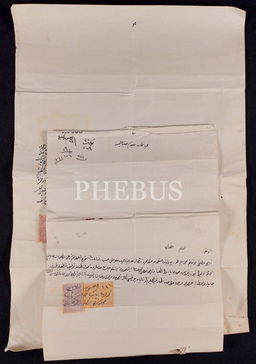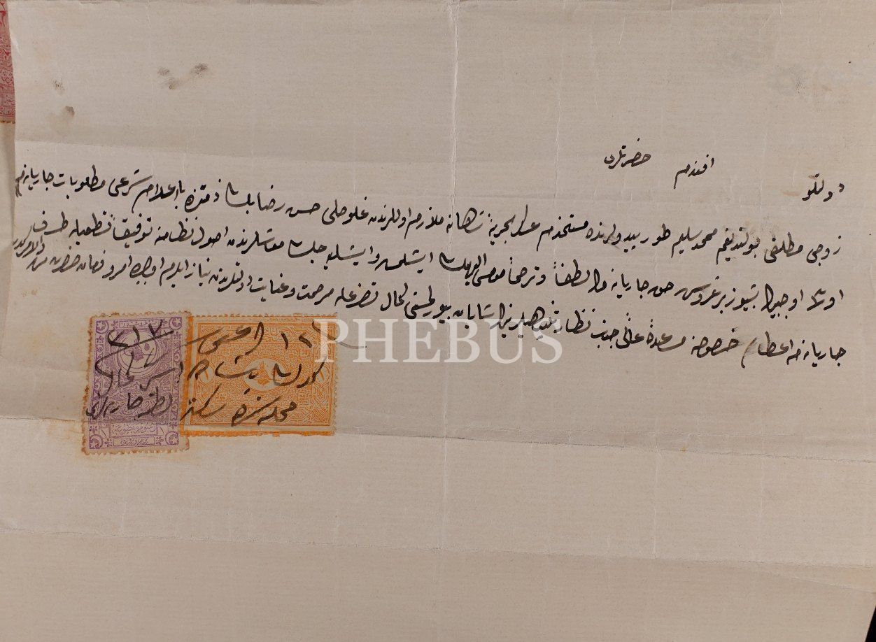 Sosyal tarih: Mehmed Selim Fırkateyni´nde mülazım olan eşi tarafından boşanan bir kadının mehir alacağını talep ettiği dilekçesi, ilişikte ilgili karar, İstanbul 1319, 31x48 cm 23x35 cm