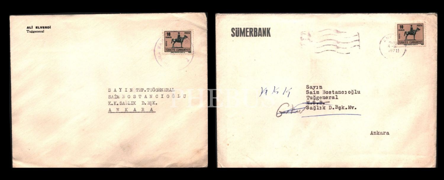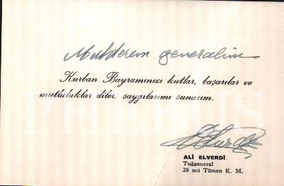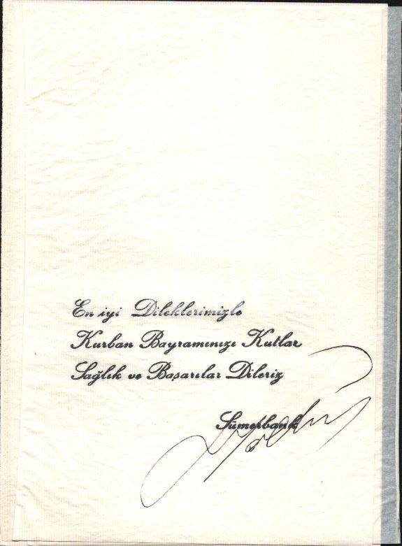 Tuğgeneral Saim Bostancıoğlu´na Sümerbank ve Tuğgeneral Ali Elverdi tarafından gönderilen bayram tebrik kartları, farklı boyutlarda
