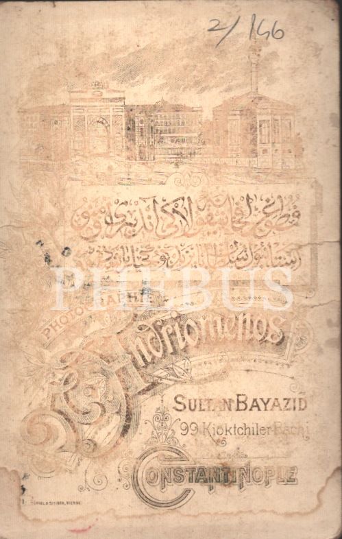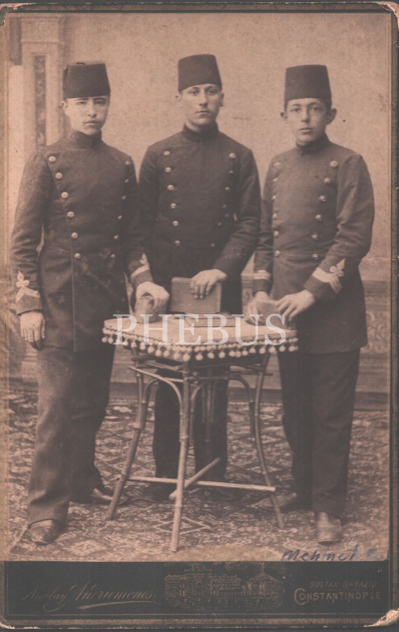 Kitaplarıyla poz veren askerî öğrenciler, Nicolay Andriomenos Fotoğrafhanesi- Constantinople, 11x16 cm