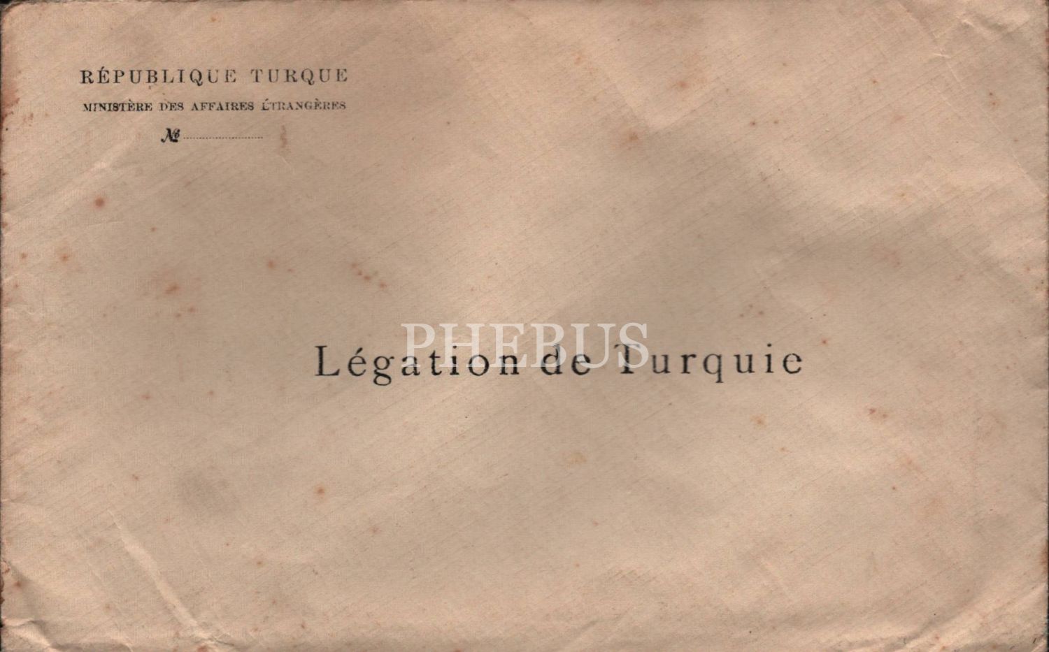 Fransızca Türkiye Cumhuriyeti Dışişleri Bakanlığı antetli ve Türk Elçiliği yazılı zarf, 15x24 cm