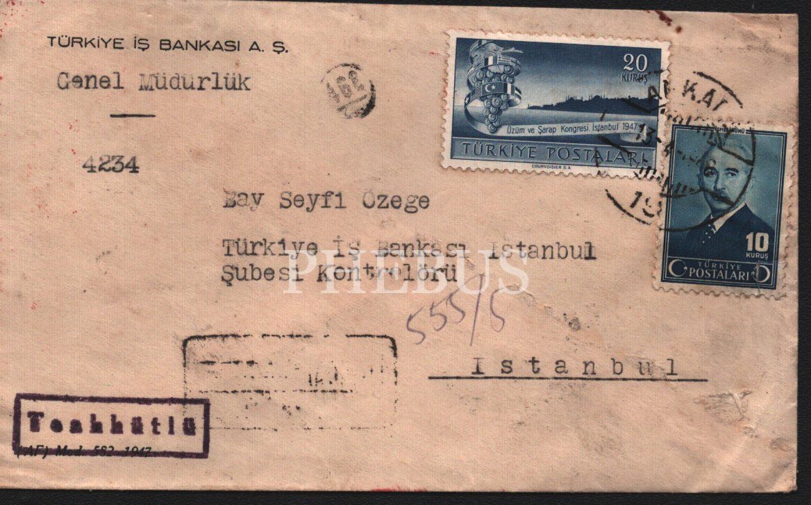 Bibliyografya uzmanı Seyfi [Seyfettin] Özege´ye Türkiye İş Bankası tarafından gönderilen zarf, 9x15 cm