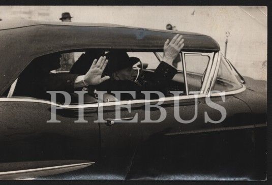Siyaset tarihi: Cumhurbaşkanı Cemal Gürsel otomobilden el sallarken, Ozan Sağdıç damgalı, 11x18 cm, kırık haliyle
