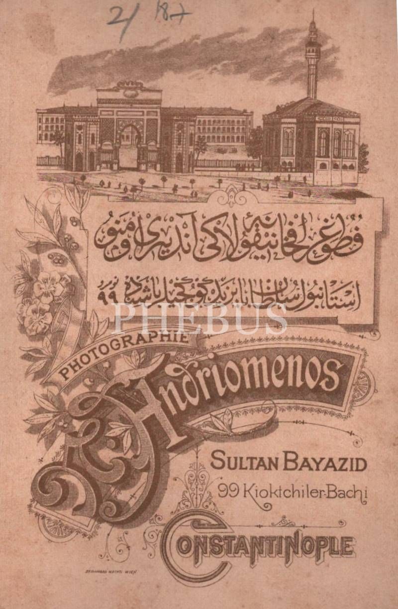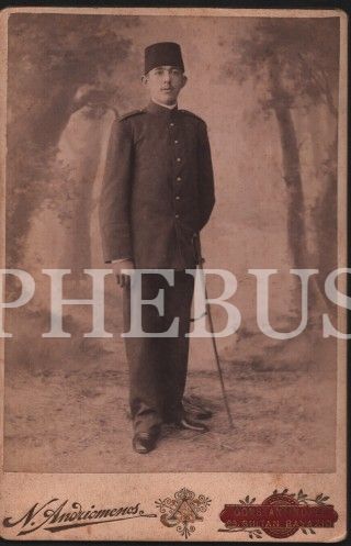 Kılıcıyla poz veren genç Osmanlı askeri, N. Andriomenos Fotoğrafhanesi- Constantinople, 11x16 cm