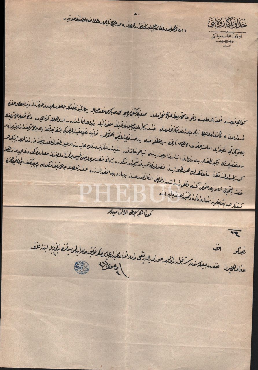 Hüdavendigâr Vilayeti [Bursa] Evkaf Muhasebeciliği antetli ve 1311 tarihli 3 adet yazışma evrağı, 23x33 cm