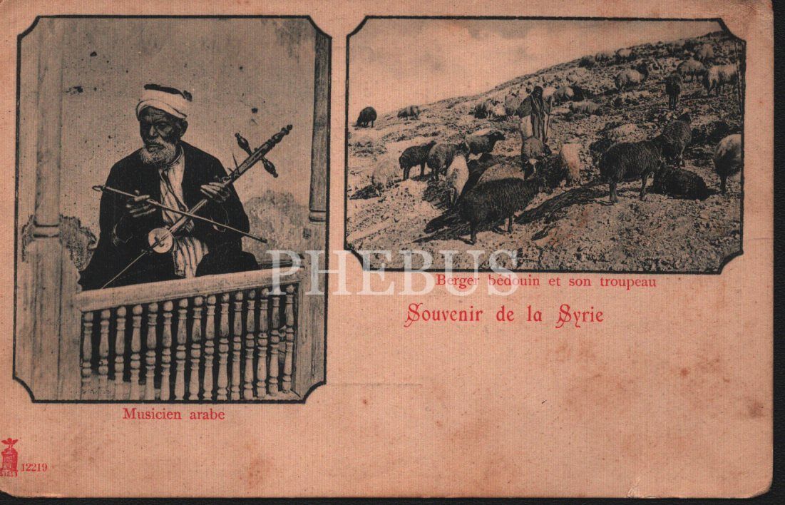 Arap müzisyen ile bedevi çoban ve sürüsü, arkası yazılı