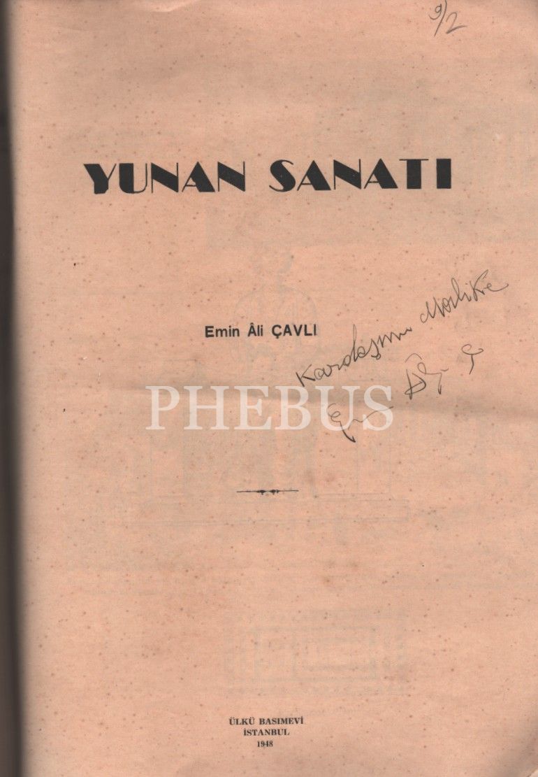 Emin Âli Çavlı´dan ithaflı ve imzalı YUNAN SANATI, Ülkü Basımevi, İstanbul - 1948, 24 sayfa, 25x34 cm