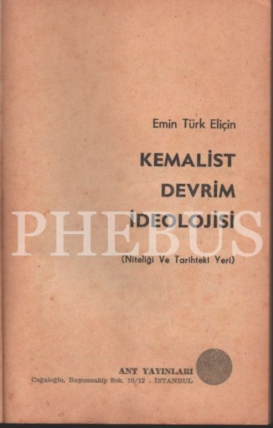Emin Türk Eliçin´in eşi Asiye Eliçin´den ithaflı ve imzalı KEMALİST DEVRİM İDEOLOJİSİ (NİTELİĞİ VE TARİHTEKİ YERİ), Ant Yayınları, İstanbul - Mart 1970, 401 sayfa