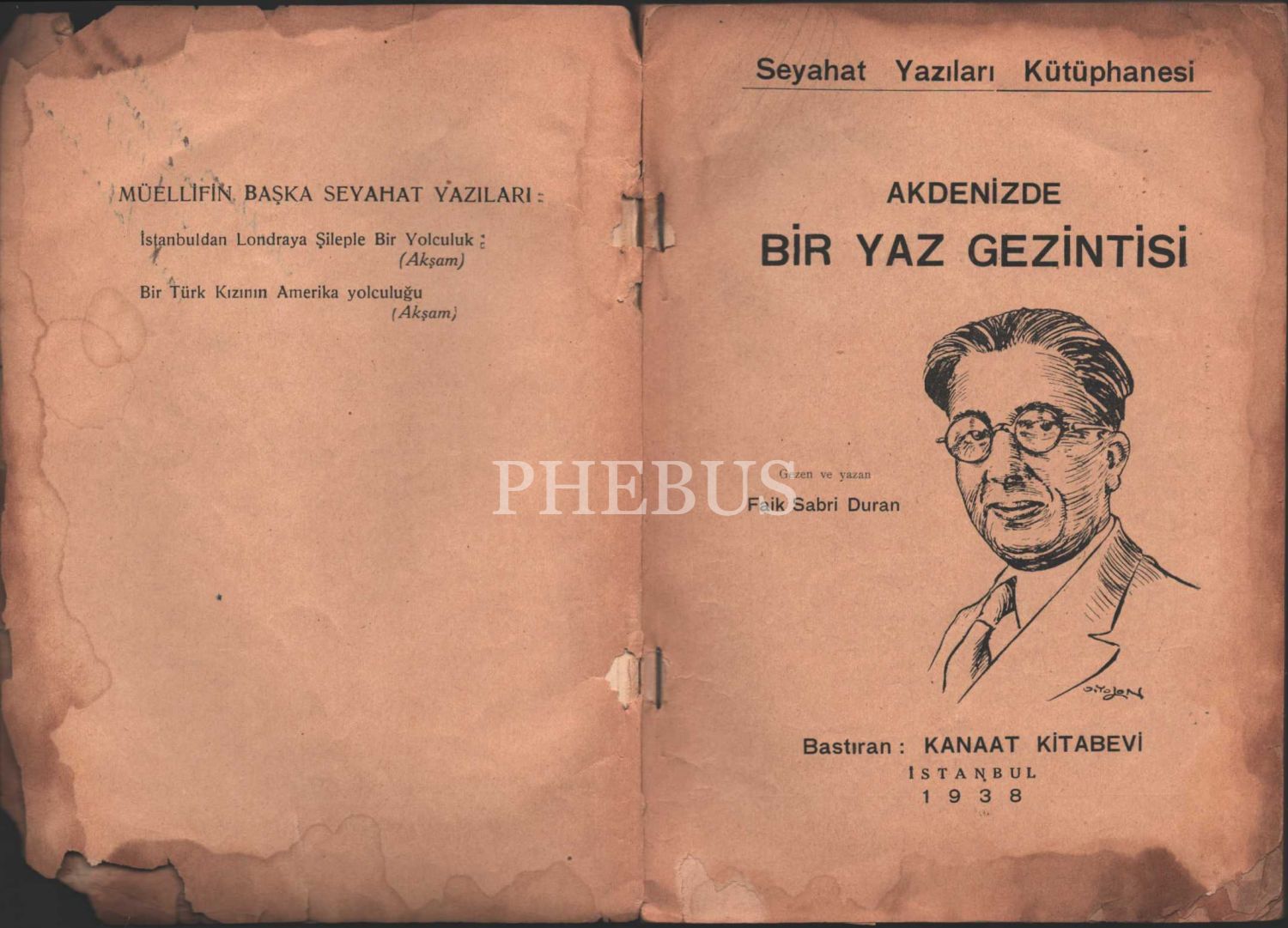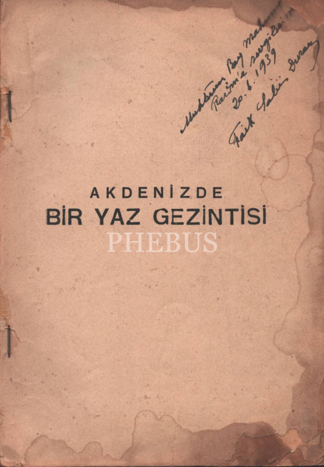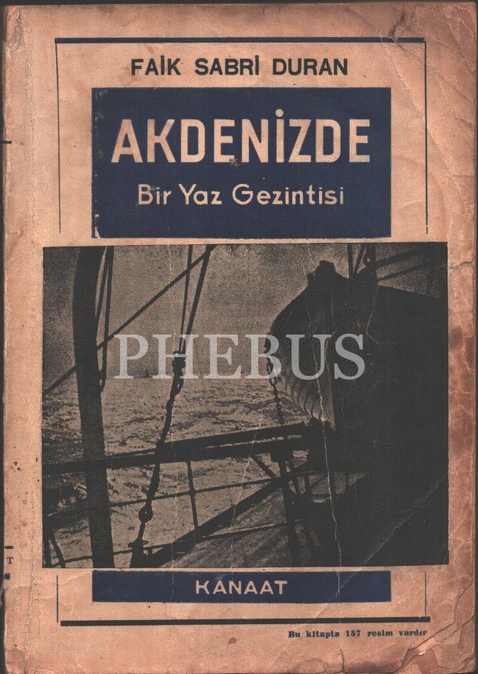 Faik Sabri Duran´dan ithaflı ve imzalı AKDENİZDE BİR YAZ GEZİNTİSİ, Kanaat Kitabevi, İstanbul - 1938, 190 sayfa, cildi yıpranmış haliyle