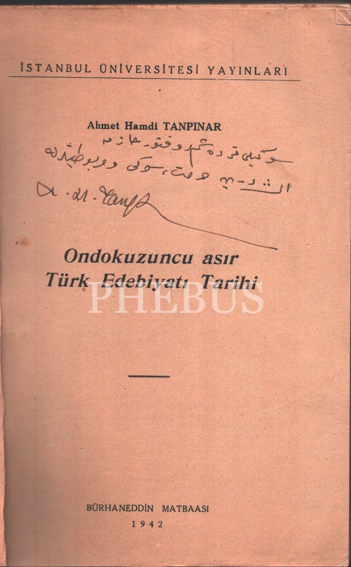 Ahmet Hamdi Tanpınar´dan ithaflı ve imzalı ONDOKUZUNCU ASIR TÜRK EDEBİYATI TARİHİ (Cilt I), Üçler Basımevi, İstanbul - 1949, 466 sayfa, 17x24 cm