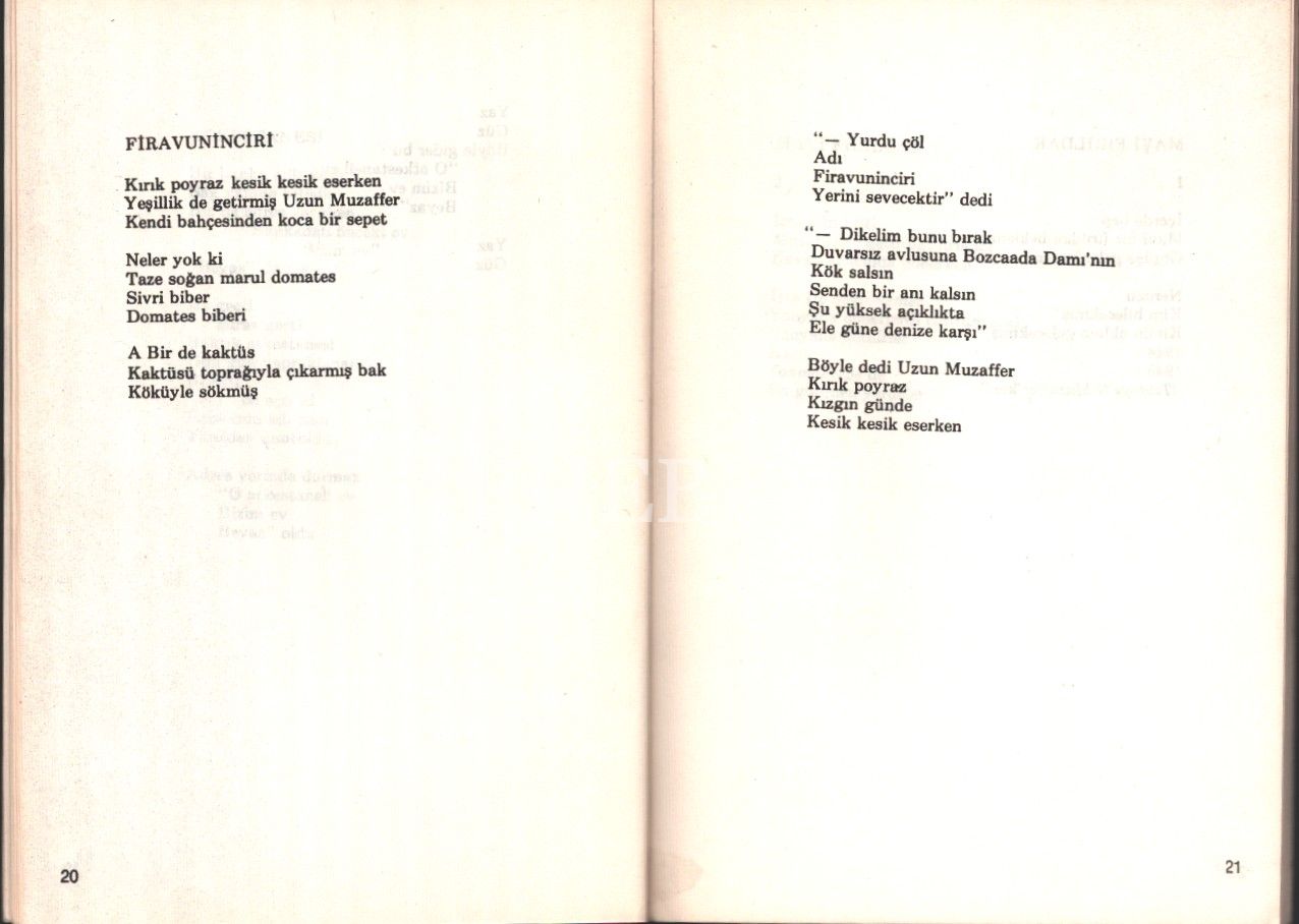 İthaf, "Turgay Gönenç´e, On parmağında on hüner. Hangisini saymalı. Eski dostluk, kardeşlik, sevgilerle. Arif Damar 29 Mart 1988" şeklindedir.