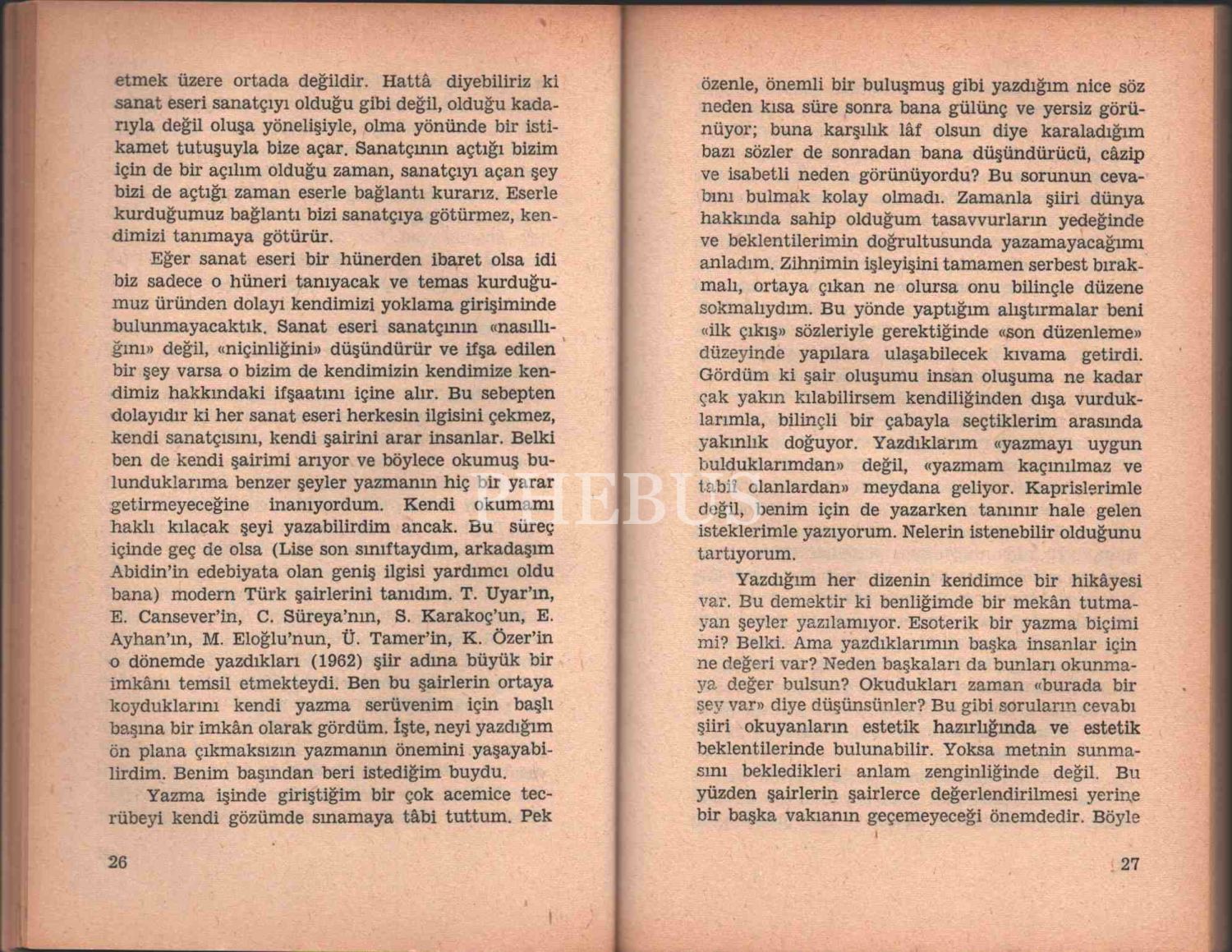 İthaf, "Zafer dergisine kardeşçe. 16.5.88 İsmet Özel" şeklindedir.