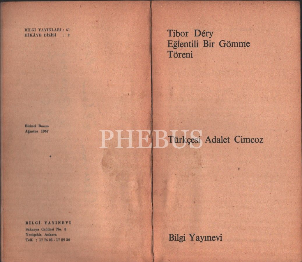 Çeviren Adalet Cimcoz´dan ithaflı ve imzalı EĞLENTİLİ BİR GÖMME TÖRENİ, Tibor Dery, Bilgi Yayınevi, Ağustos 1967, 123 sayfa