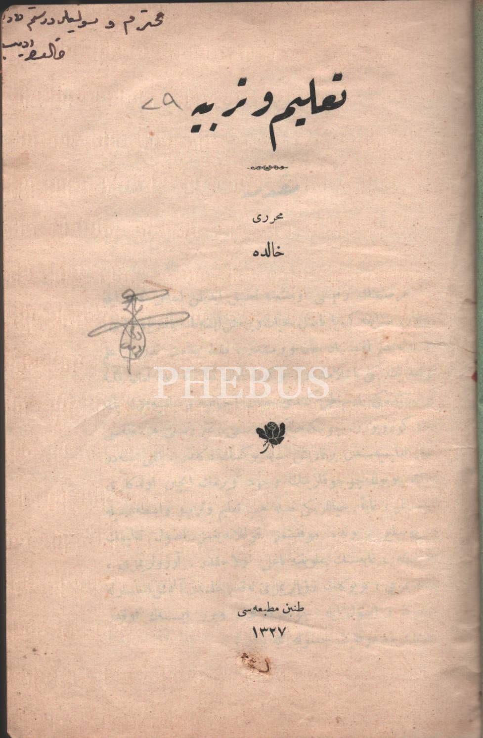 Halide Edib´den ithaflı ve imzalı TALİM VE TERBİYE, Tanin Matbaası, 1327, 214 sayfa, 13x20 cm