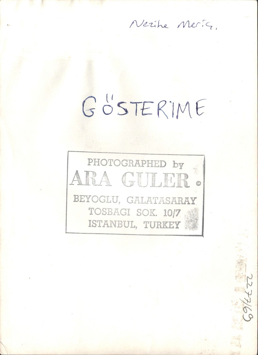 Ara Güler´in objektifinden Nezihe Meriç, arka yüzü "Photographed by Ara Guler" kaşeli, 17x24 cm