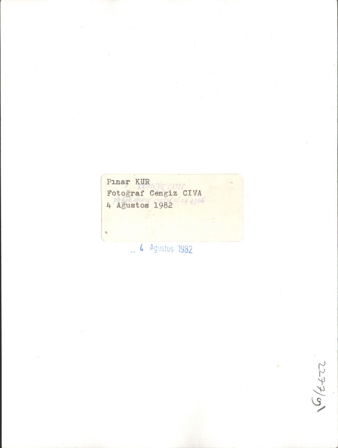 Cengiz Cıva´nın objektifinden Pınar Kür, arka yüzü "Cengiz Cıva - 4 Ağustos 1982" etiketli, 18x24 cm