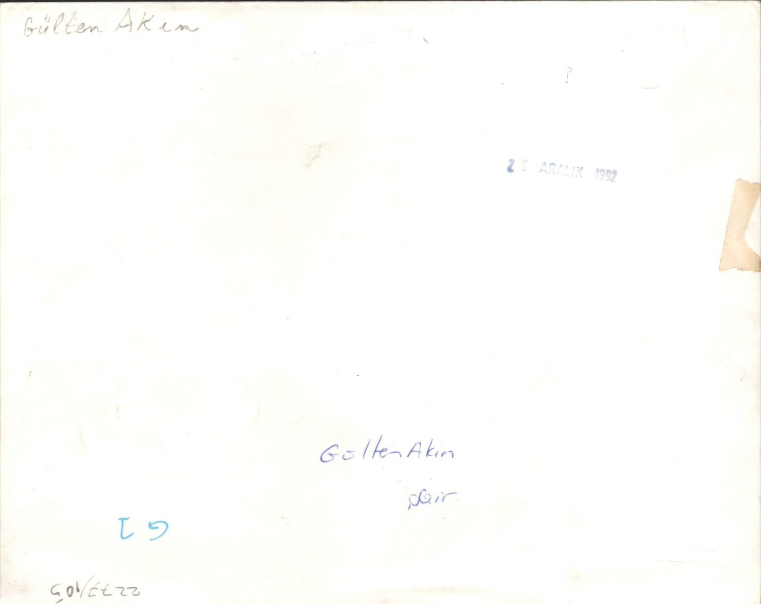 Gülten Akın, arka yüzü "20 Aralık 1992" kaşeli, 25x20 cm