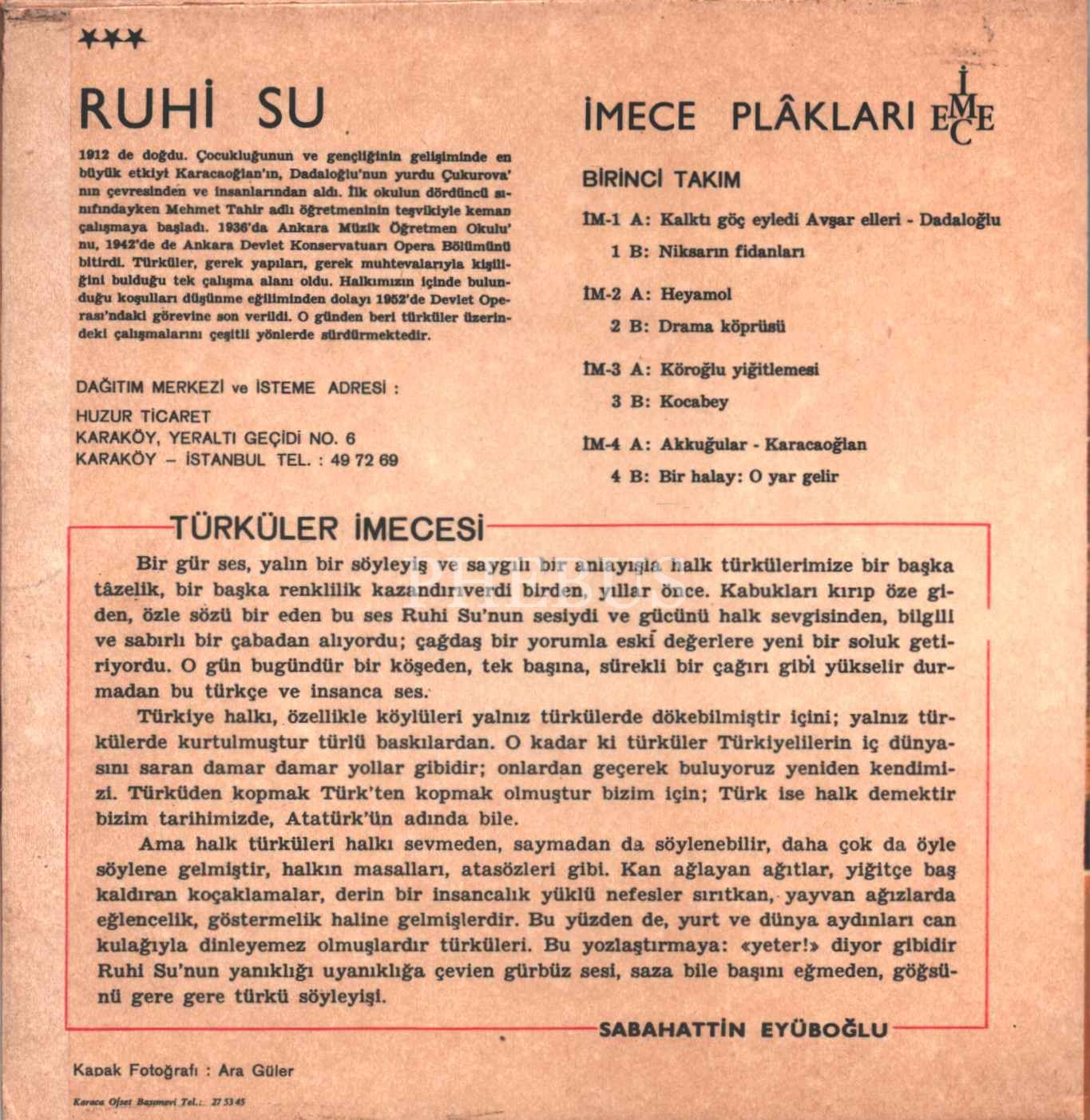 RUHİ SU - Elif Karacaoğlan / Mantıvar (Kapak İM1-4, Plak İM7´ye aittir)