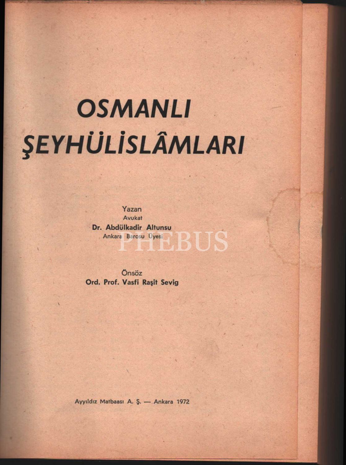 OSMANLI ŞEYHÜLİSLAMLARI, Abdülkadir Altunsu, Ayyıldız Matbaası, 1972