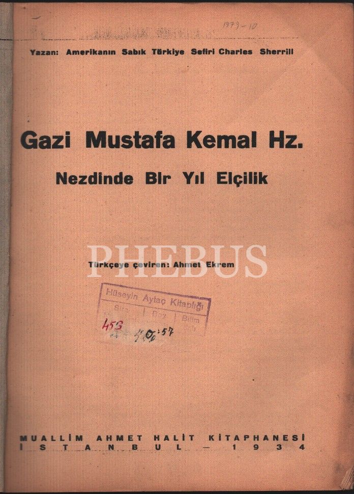 ATATÜRK NEZDİNDE BİR YIL ELÇİLİK, General Sherrill, Muallim Ahmet Halit Kitaphanesi, 1935