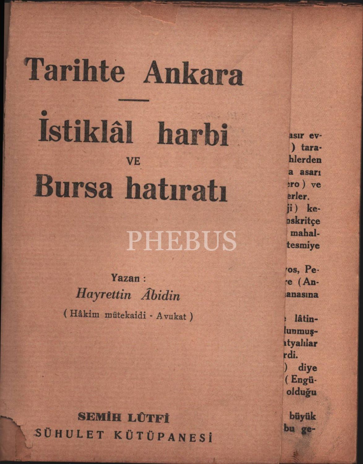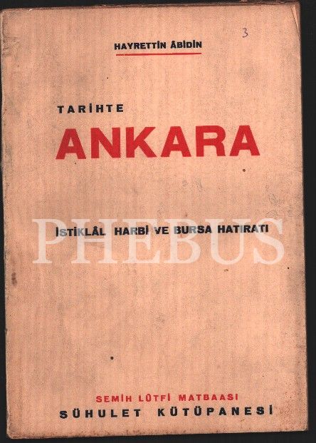TARİHTE ANKARA (İstiklâl Harbi ve Bursa Hatıratı), Hayrettin Abidin, Sühület Kütüphanesi