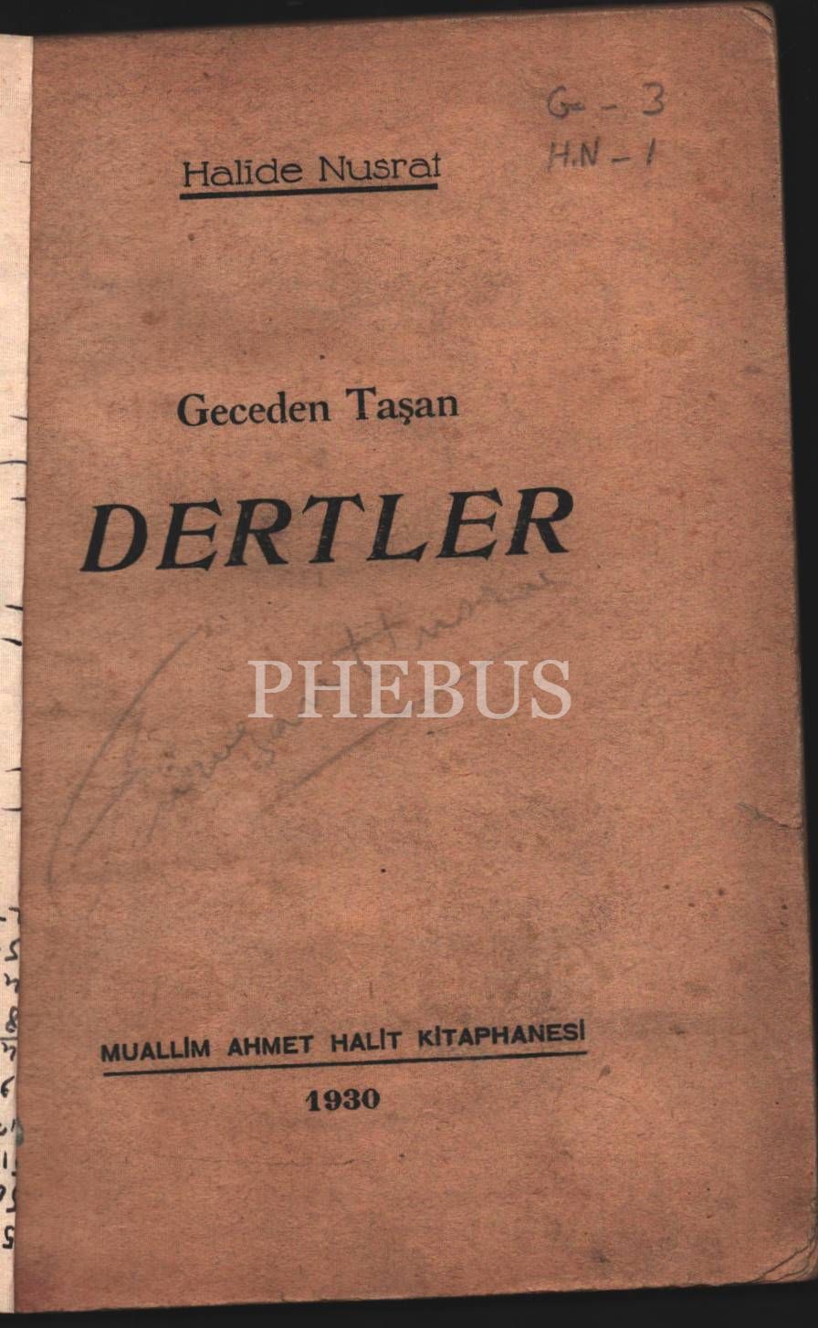 GECEDEN TAŞAN DERTLER, Halide Nusrat, Muallim Ahmet Halit Kitaphanesi, 1930